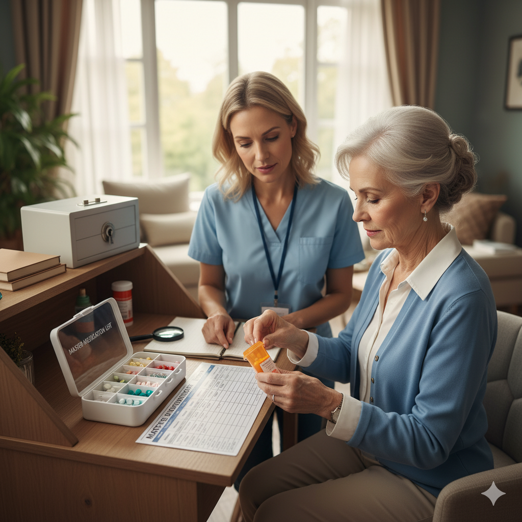 - Establish a Dedicated Medication Station: Create a cool, dry, well-lit, accessible, and secure “command center” for all medications, never in the bathroom, to prevent degradation and errors.