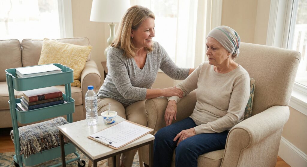 • The Caregiver’s Role: Everything else must be delegated. When friends ask, “What can I do?” have a list ready. “Can you buy groceries?” “Can you fold the laundry?” Hand over the non-essential tasks to protect your loved one’s energy reserve for what truly matters.